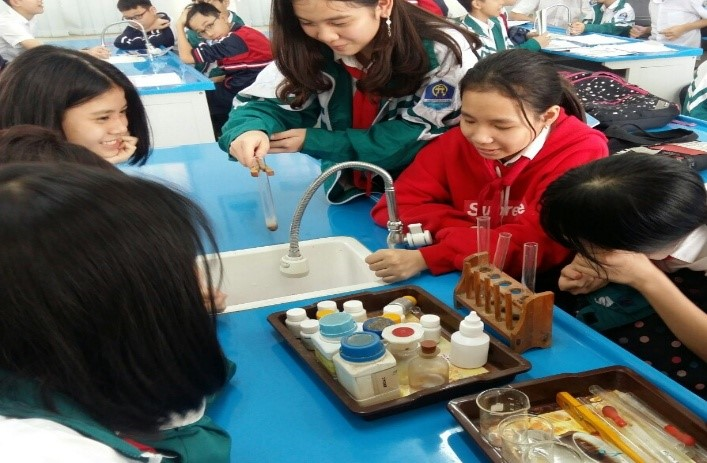 Học sinh rất hào hứng với giờ học vì ngoài việc được quan sát kỹ các thí nghiệm biểu diễn của giáo viên, các em còn được trực tiếp làm các thí nghiệm thực hành, tự rút ra bài học thông qua kết quả thu được. Kiến thức mà các em tiếp nhận được vì thế cũng được khắc sâu hơn.
